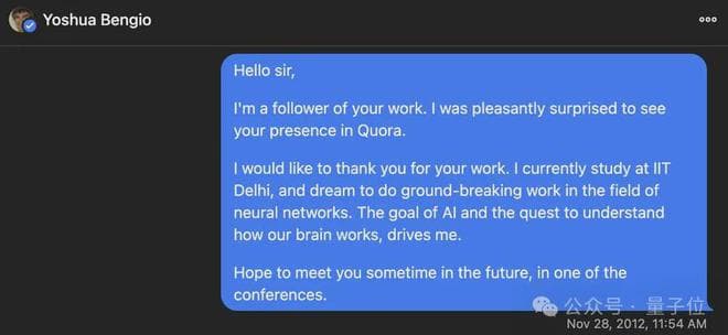 “我”真诚地感谢他帮助像“我”这样的本科生理解深度学习。“我”通过Quora联系他,表达谢意。