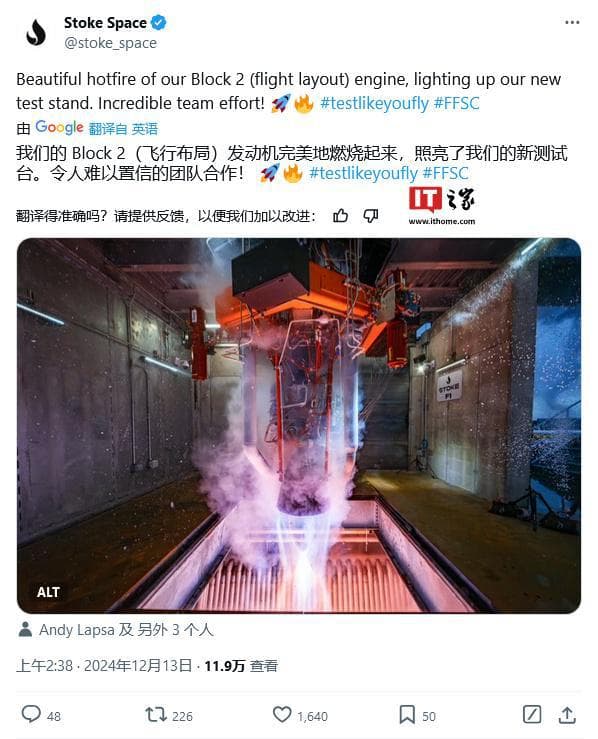 4 岁航天公司创造奇迹:Stoke Space 完成一级火箭发动机点火测试