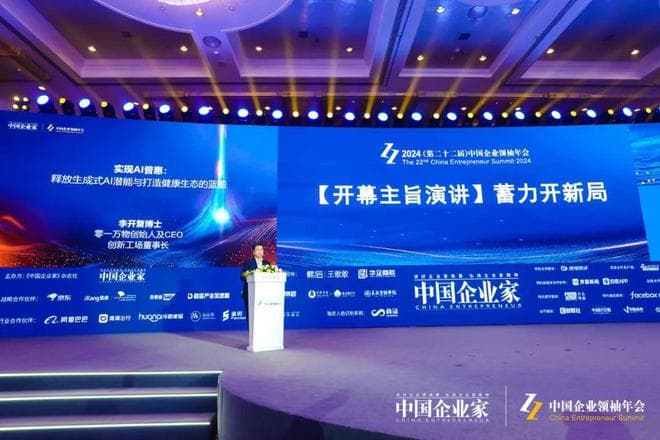 12月13日~15日,由《中国企业家》杂志社主办的“2024(第二十二届)中国企业领袖年会”在北京举行。零一万物CEO、创新工场董事长李开复博士出席本次年会,分享了关于人工智能的看法和展望。