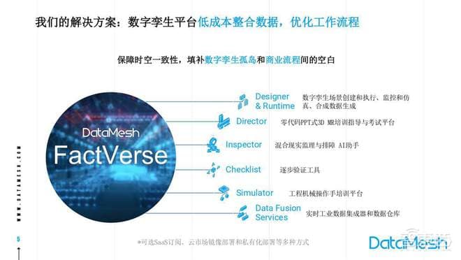 FactVerse 是 DataMesh 推出的企业级元宇宙平台,结合数字孪生、企业知识图谱和混合现实技术,能够帮助企业在虚拟空间中实现模拟、可视化和分析操作,优化工作流程,加速生产效率。