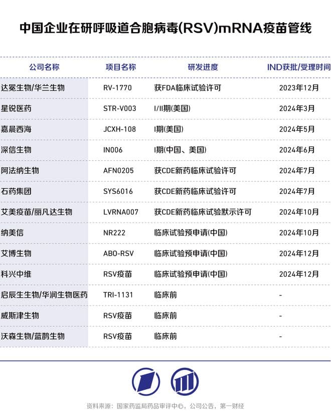 目前国内企业已披露的RSV mRNA在研管线达到14条,其中,7款产品获批进行临床试验,3款临床试验申请已获受理。未来这些在研产品能否凭借后发优势超越Moderna的mRESVIA不得而知,但短期内难以避免受到市场负面情绪的影响,企业甚至可能不得不重新考虑RSV疫苗的市场前景。