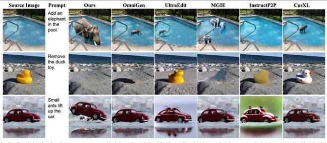 在指令编辑任务中,UniReal 能够更好地保持背景像素的一致性,同时完成更具挑战性的编辑任务。例如,它可以根据用户指令生成 “蚂蚁抬起轿车” 的画面,并在轿车被抬起后动态调整冰面上的反射,使其与场景的物理变化相一致。这种能力充分展现了 UniReal 在场景理解和细节生成上的强大性能。