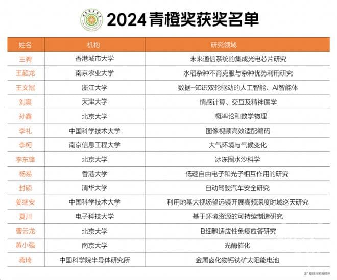 今天,2024青橙奖结果揭晓,15名中国青年科学家获奖,每人将获得可自由支配的百万奖金。他们平均年龄34岁,在集成光电芯片、情感计算与交互、青藏高原冰冻圈、时域巡天等多个关键领域取得重要成果。其中,超六成的获奖者将人工智能引入科研领域,利用交叉研究实现突破,展现出中国青年科学家勇立潮头,积极探索AI for Science新范式。