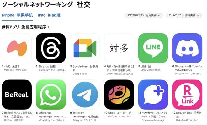 在 App Store 的免费社交软件排行榜里,它排第四,比 Line 、 Discord 、 WhatsApp 、电报这些声名远扬的老牌 App 还强势。