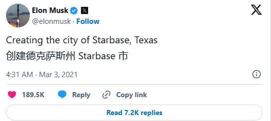 看到这里,差友们是不是会疑惑,既然人很少,干嘛还要多此一举搞成城市呢?其实,这还得亏了马斯克,直接把整个村子给带起飞了。