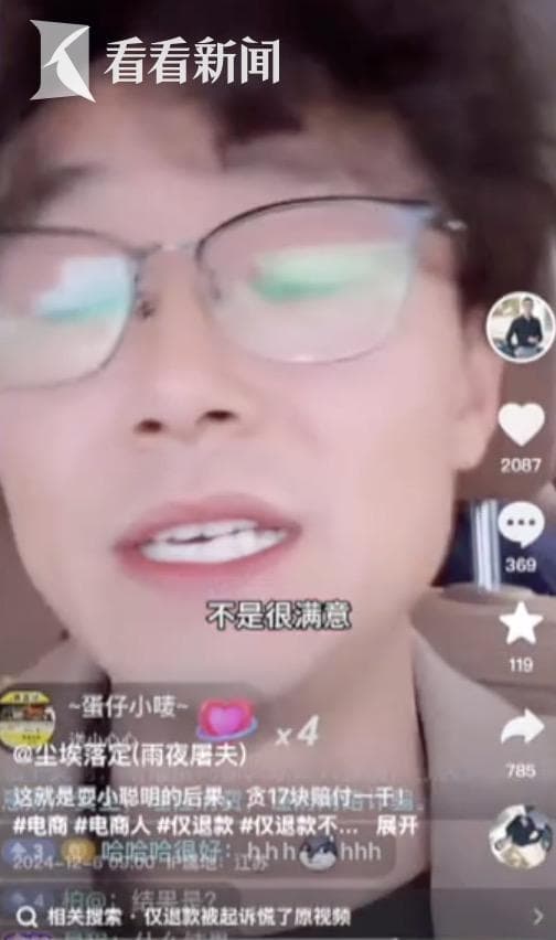 对此,律师表示,如果在直播里面,他要是开5000元,可能网民反过来会指责他,你狮子大开口。如果说他这样做多做几次的话,有可能确实会引来被刑事起诉敲诈勒索的风险。第二个是他维权的时候,有的时候会开直播,那么直播的这种情况下面可能会暴露买家的肖像,买家的姓名,这个其实又会引发肖像权、姓名权的争议。