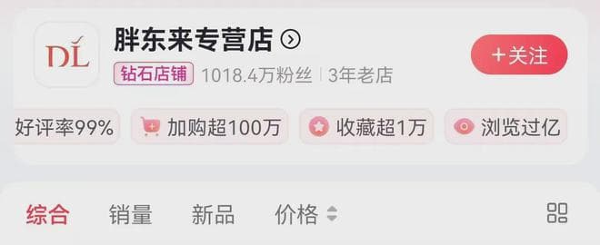 截至目前,抖音账号“胖东来专营店”粉丝量已达1018.5万。平台数据显示,店铺商品销量已达196.6万。