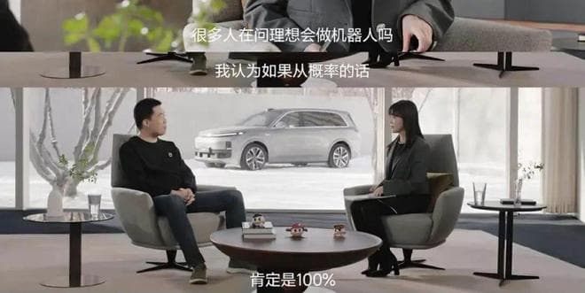 也透露了不少接下来的产品布局,比如理想同学将成为“个人助手”,未来100%会做人形做机器人,同时不想布局Robotaxi,还有可能造一款人工智能超跑。