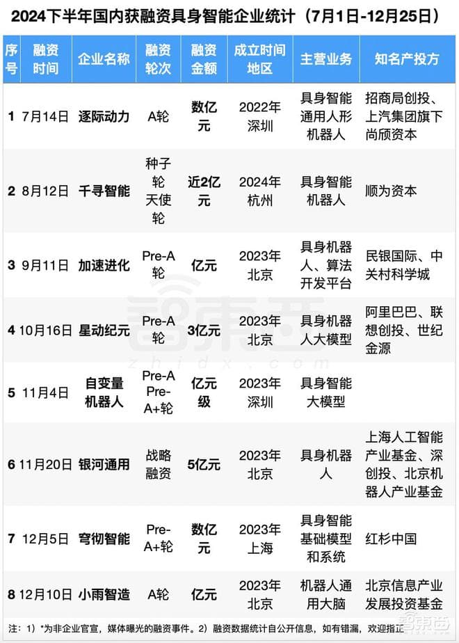 ▲2024年下半年获融资具身智能企业统计(截至12月25日)