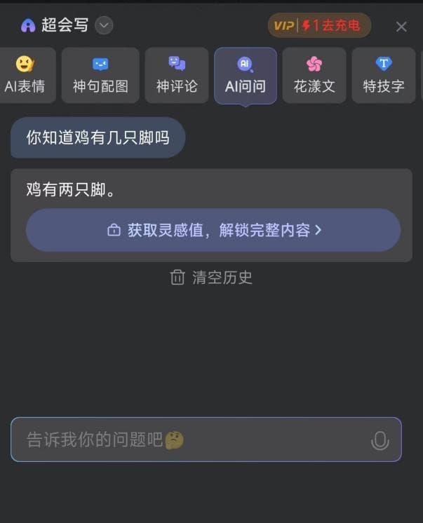 微信输入法候选栏就会有“问AI”的提示,可以问它们各种各样的问题,就是有点答非所问。