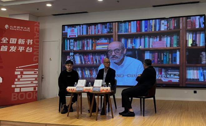 北京图书大厦内四位嘉宾密集讨论最新思考