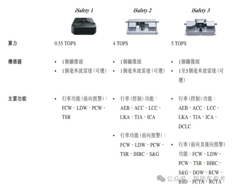 iSafety系列具备AEB、ACC、TJA等L0-L2级别的ADAS功能,目前已经开发到第三代,并完成了商业化和量产。