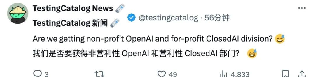 因此,网友辣评,OpenAI 已经一分为二。 这下,真分成标榜非营利的 OpenAI 和实质营利的 CloseAI。