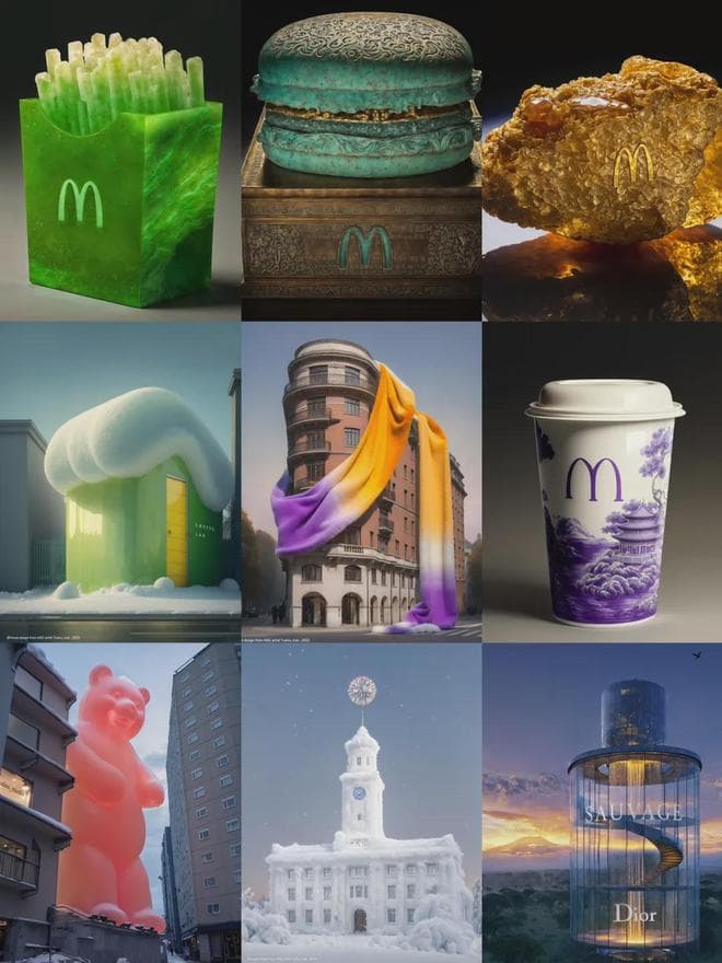 2023年初,他创作了一系列麦当劳的AIGC作品,例如青铜器汉堡、传世宝玉薯条、青花瓷可乐等等。这系列作品让他获得了火爆的关注度,在广告业界出了圈。