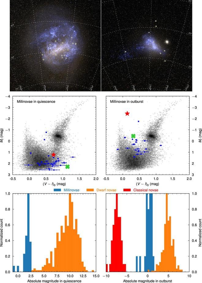 天文学家认为 Millinovae 是由一颗白矮星和一颗耗尽了核心氢并膨胀的亚巨星组成的双星系统,两颗星非常接近,物质从亚巨星流向白矮星。