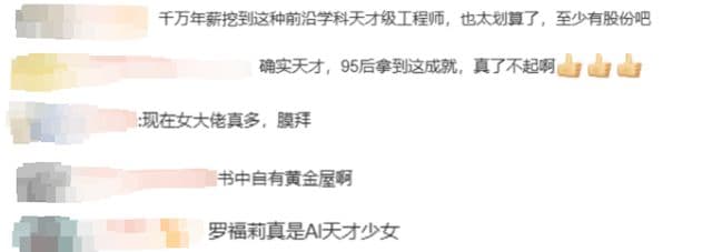 #雷军千万年薪挖角95后AI天才少女#的词条也是迅速登上了热搜,许多网友纷纷感叹这就是壕版书中自有黄金屋,以及巾帼不让须眉的典范了。并表示雷军的这笔签约非常的划算。