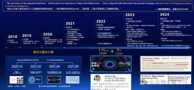 而且智源研究院在2020年10月就成立了一支百余人的技术攻关团队,专做大模型研发。并在2021年分别发布了悟道1.0、悟道2.0,2023年发布悟道3.0系列。