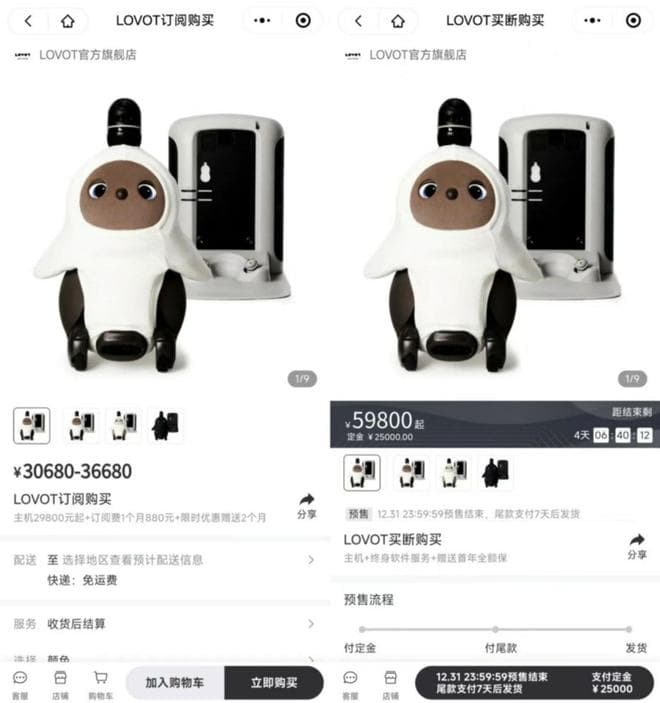 这个除了“爱你”,其他什么都不会,甚至都没办法和你进行对话的机器人,目前的付费方式分为两种,一种是3万人民币购买主机+每个月880元订阅费;另一种是6万元直接买断。