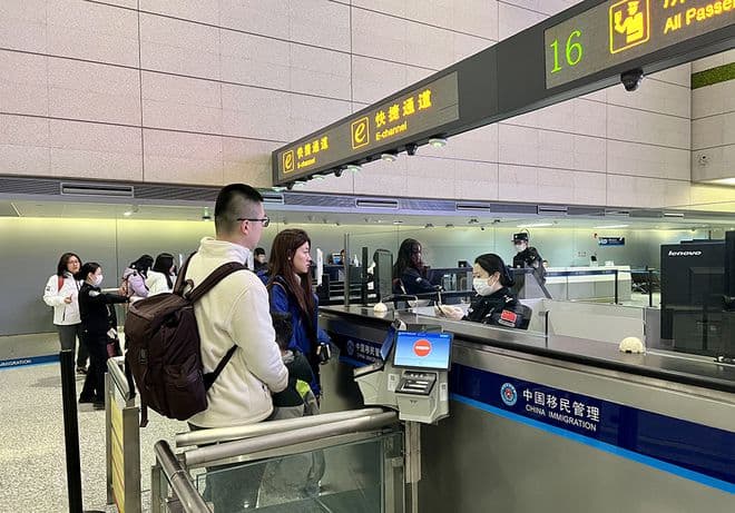“我们在虹桥机场边检查验大厅为当日乘坐C919国产大飞机出行的旅客开设了特别通道,同时抽调精干力量,加强现场政策咨询和服务指引,科学运用快捷通道分流,保障旅客通关更加顺畅。在入境现场,我们还设置了‘外国人入境卡’电子填报自助打印终端,让乘坐国产大飞机来华的外国友人通关更加便利。”虹桥边检站边防检查处处长董建国告诉记者。