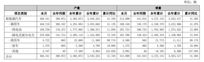 比亚迪12月新能源汽车销量51.48万辆,再创新高。2024年全年销量427.21万辆,累计同比增长41.26%。