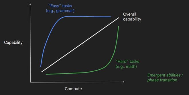 人们经常用「涌现能力」或「相变」这两个术语来描述这种现象。