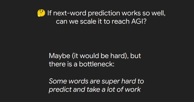 仅仅做下一词预测确实存在一个根本性的瓶颈:有些词非常难预测,需要大量工作。