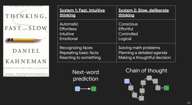 思维链则属于 System 2 思维,这是有意识的、费力的、受控的。