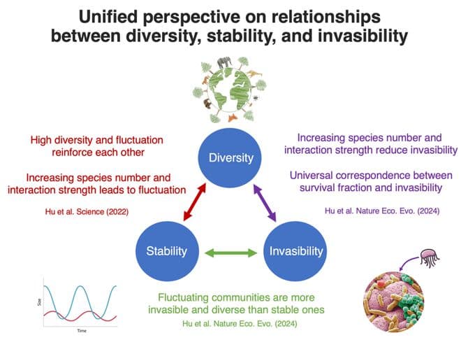 总体来说,该研究通过对生态学中三个重要的涌现变量(多样性、稳定性、入侵性)建立统一的关系框架,为预测入侵成功与生态影响提供了一种全新的视角。