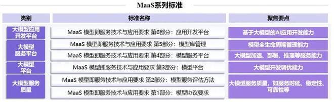 中国信息通信研究院(简称“中国信通院”)紧跟 MaaS 领域最新发展趋势,依托中国人工智能产业发展联盟于 2023 年成立 MaaS 工作组,联合产学研各界专家共同启动 MaaS 系列标准编制,经过一年多的持续努力,现正式发布 MaaS 系列标准。