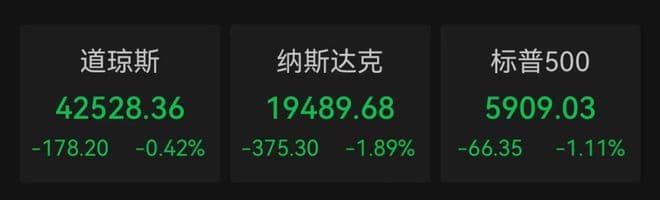 当地时间1月7日,美股三大指数集体收跌,纳指下跌375.3点,跌幅1.89%;标普500指数下跌66.35点,跌幅1.11%;道指下跌178.2点,跌幅0.42%。