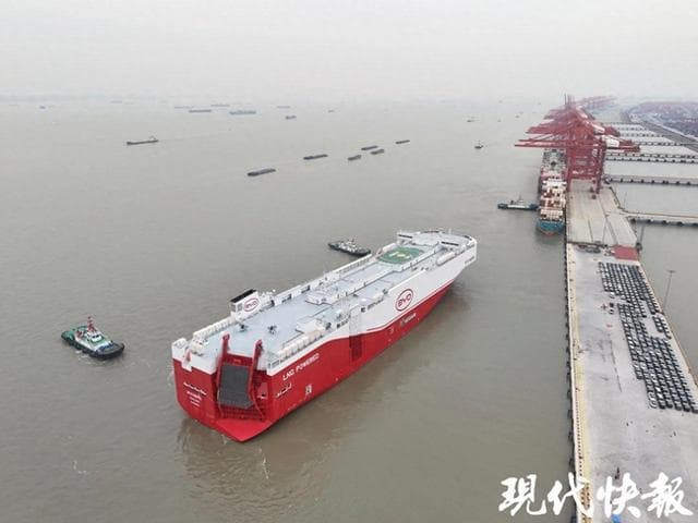 据介绍,“比亚迪合肥”轮是比亚迪第三艘滚装船,船长199.9米,型宽38米,设计吃水9米,设计7000个标准车位,应用了最新LNG双燃料清洁动力技术,二氧化碳排放将减少30%,适应多元航线需求。