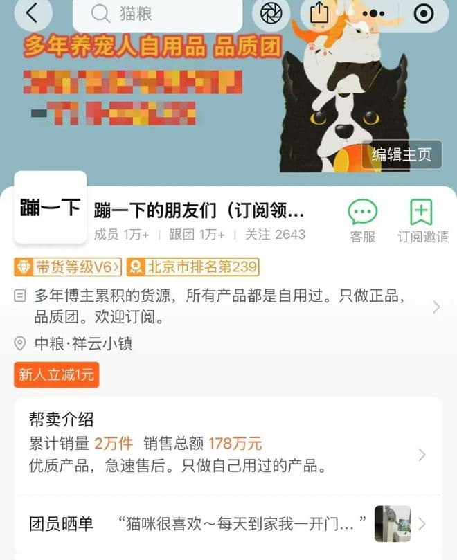 静静( 化名 ) 2023 年在快团团上开了个宠物用品的小团,体量不算大,但生意好的时候一个月也能卖 30 万。
