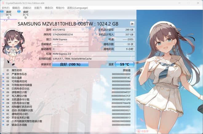 处理器区域下方就是 M.2 固态插槽的位置,自带一条 1TB 容量的三星 MZVL81T0HELB-00BTW 固态硬盘,硬盘的实际读写速度表现如图所示。单条硬盘插槽对于后期升级空间有一定的局限,好在可以自行更换更大容量的固态。