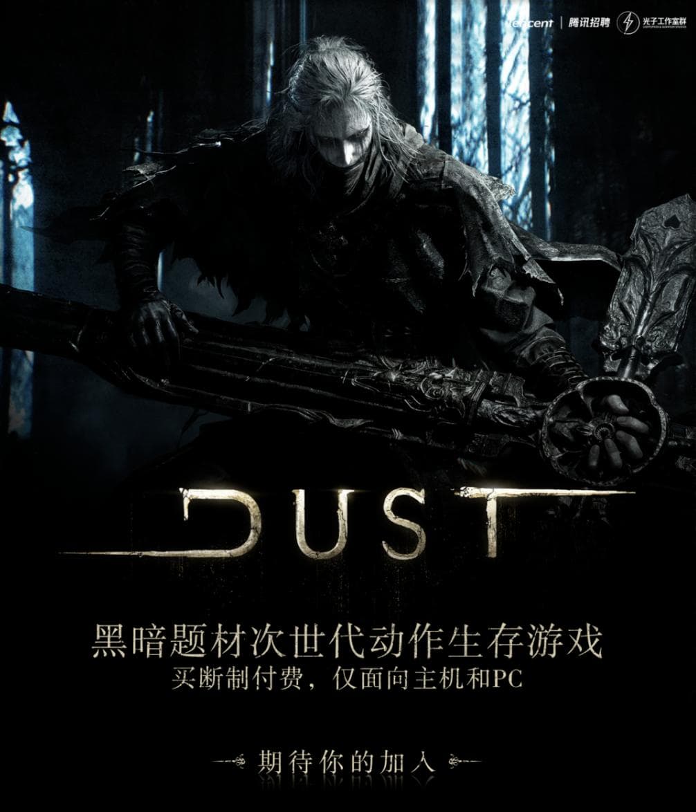 而就在上周IEG年会结束后,腾讯IEG招聘发布了买断制动作生存游戏游戏《DUST》的招聘信息,由光子工作室群制作,面向PC和主机平台,陈宇指的或许正是这款产品。