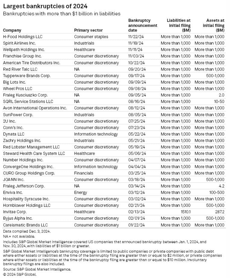 US corporate bankruptcies just below 14-year high as November filings surge. (S&P Global)