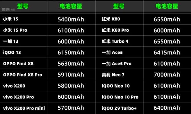 就比如红米 K80 还有一加 Ace5,这两台手机电池容量都奔着 6500mAh 去了,真我 Neo 7 更是直接在手机里塞了 7000mAh 的电池,四舍五入相当于塞了个充电宝进去,就离谱。。。