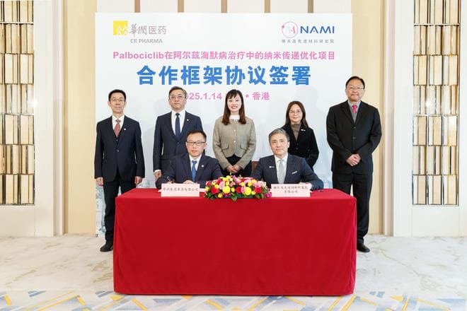 1月14日,华润医药集团有限公司与香港的纳米及先进材料研发院(NAMI)签署合作框架协议,双方将携手推进“Palbociclib在阿兹海默病治疗中的纳米传递优化”项目,并由香港大学支援药效研究,致力应对阿兹海默病(AD)这一全球医疗领域的重大挑战。