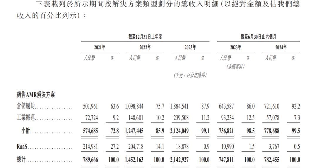 对于2024年上半年收入增速下降的原因,极智嘉解释称,公司减少RaaS服务业务线导致其产生的收入减少,部分抵销了该期间的收入增长。此前,极智嘉曾向客户提供RaaS服务,即提供标准化机器人租赁服务以及一整套营运支持及管理服务,但于近年逐步了减少相关业务。