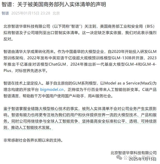 突发!25家中企被列实体清单,智谱AI遭「拉黑」,官方回应来了