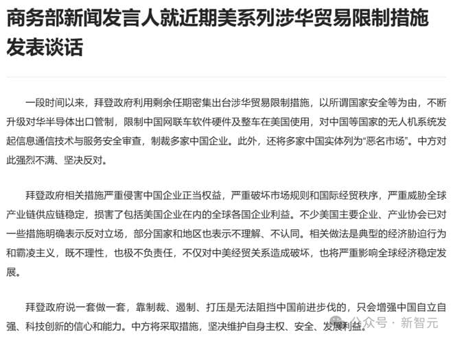 如今,随着拜登在白宫的任期即将结束,其政府一直在疯狂推出全新的限制措施,限制中国在科技领域的进步。