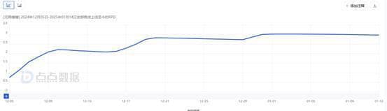 ARPDAU方面,点点数据显示,12月31日,《无限暖暖》ARPDAU达到近期高点,此后有所回落。
