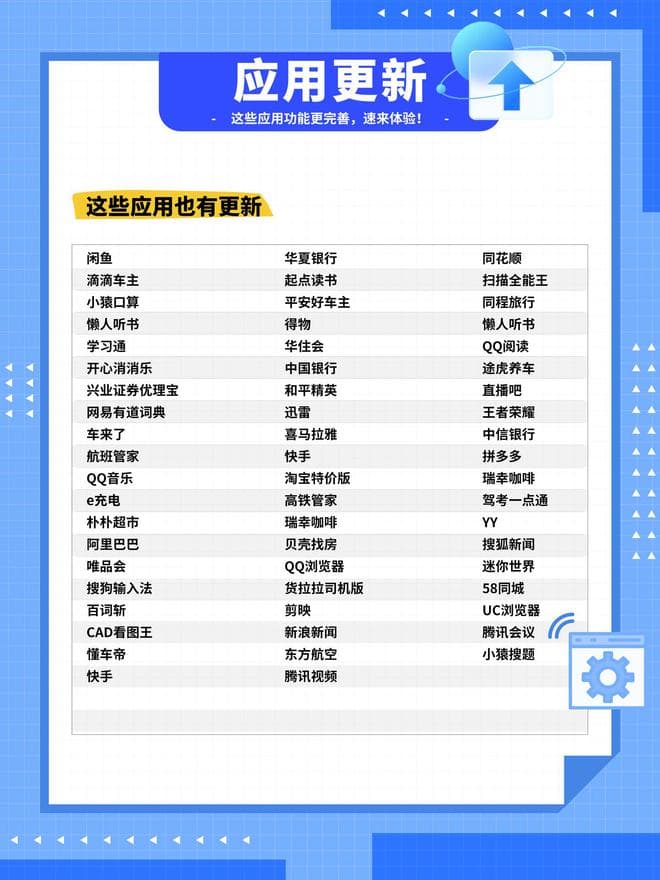 在本周内,还有北京大学、纳米 AI 搜索、360AI 办公、QQ(平板端)等在内的几十余款新应用上架;闲鱼、滴滴车主、小猿口算、QQ 音乐等应用迎来了更新。