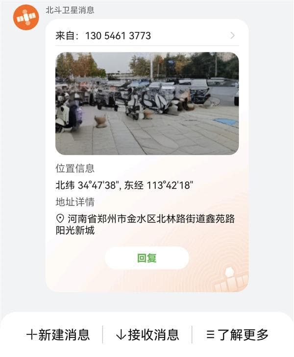 对于信息接收方而言,即使你没有华为手机也无需担心。北斗卫星消息会直接发送到你的短信中,短信内容包括发送人信息、发送内容、是否遇到危险情况等,以及具体的经纬度位置。