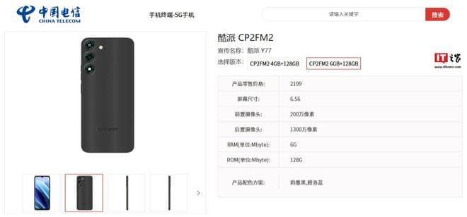 IT之家 1 月 19 日消息,型号为“CP2FM2”的酷派 Y77 手机现身中国电信终端产品库,相关页面显示产品零售价格 1899 元起。