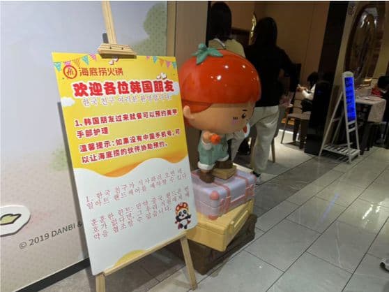 “以前基本没有太多韩国游客来吃,今年1月份开始,韩国顾客的占比接近15%左右,尤其在夜宵场,所以我们也增加了韩语菜单。”第一百货商店海底捞店经理穆化飞告诉记者,近期已经把营业时间延长至次日凌晨7点,也就是通宵。每当到了夜里店门口都会排起长队,店里也为韩国的游客准备了他们喜欢的冰饮。