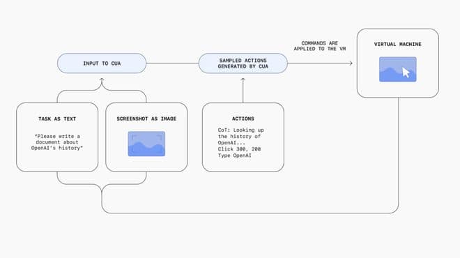 据官方介绍,Operator由一种名为“计算机使用代理(Computer-Using Agent,CUA)”的新模型提供支持,通过强化学习,将GPT-4o的视觉能力与高级推理能力相结合,让Operator可以 “看到”(通过屏幕截图)并与浏览器 “交互”(使用鼠标和键盘所允许的所有操作),使其能够在网络上采取行动,无需通过自定义API(应用程序接口)集成。如果遇到困难或犯错,Operator还可以利用其推理能力进行自我纠正,当需要帮助时,控制权将可以交还给用户。