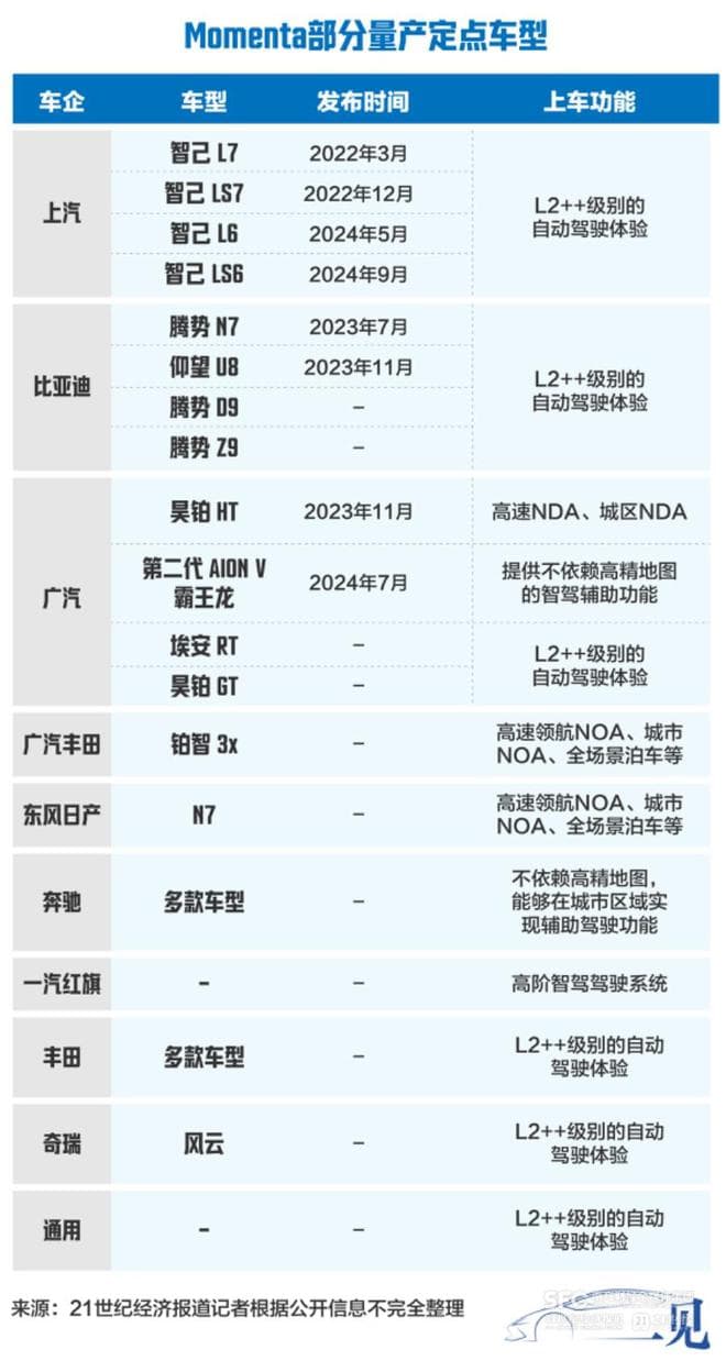 (由于 Momenta 暂未对外披露其整体车型覆盖情况,所附图表基于公开渠道获取的信息进行整理,仅供参考)