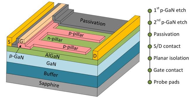 图丨超结 p 型 GaN 栅高电子迁移率晶体管的结构和工艺流程(来源:IEDM)
