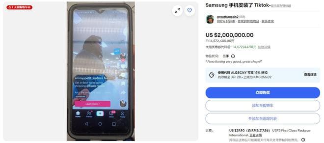 eBay卖家高价出售预装TikTok二手手机,有三星手机售价超过200万美元