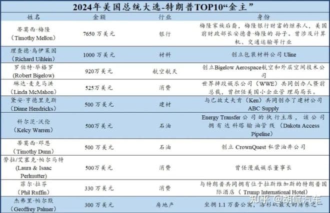 恰好在特朗普的 10 大金主爸爸里,就有这么两家石油企业。
